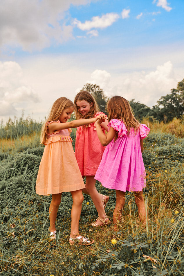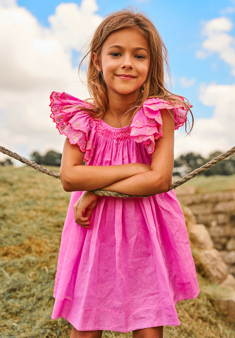 • Let the fun times roll with the Teagan Dress. This vintage-inspired, above knee sweetie comes with hand smocking details at collar and double layer ruffled sleeves with scallop embroidery. A delightful choice for birthdays, summer picnic, or special family celebrations like Easter.