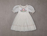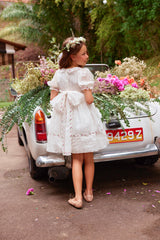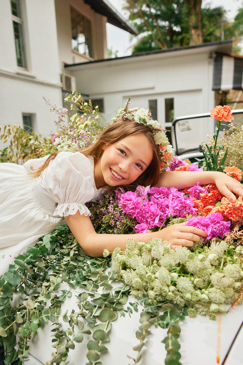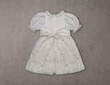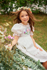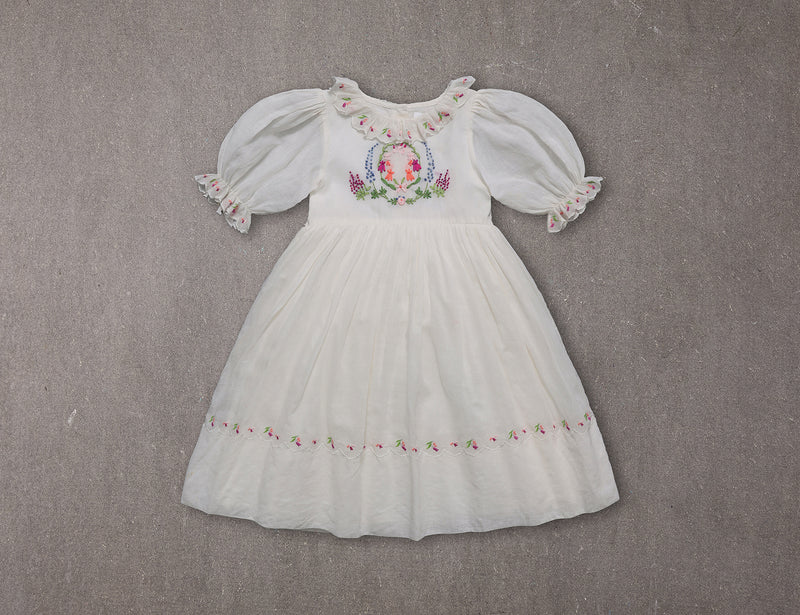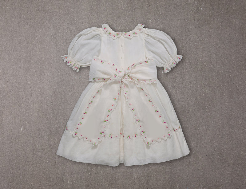 • The Violet Dress might just be the loveliest flower girl dress your little girl can ever wear. Fittingly adorned with flower embroidery on the skirt, puff sleeves and scallop edges, the Violet features a lovely hand sewn floral ribbon embroidery, which perfectly matches the bouquet of blooms that your girl will carry down the aisle. Witness her become a vision of how special the day is as glitter buttons and gorgeous backside bow make the moment even more magical. Your girl will look just as stunning in the Violet for these special occasions: birthday, Christmas, Easter, Eid and milestone recitals.
