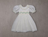 • Aubrie는 인스턴트 클래식입니다. 보디스의 핸드 스모킹, 퍼프 슬리브, 러플, 넓은 백 보우, 칼라와 소매의 부채꼴 가장자리에 꽃 자수와 같은 시대를 초월한 디테일로 꽃을 피우는 소녀 순간, 가장 아름다운 생일 축하, 이정표 리사이틀에 훌륭합니다. , 부활절 또는 Eid.