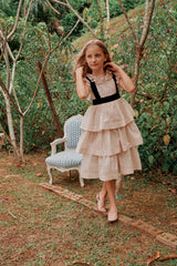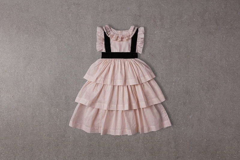 • 눈에 띄는 핑크와 블랙 조합의 빈티지 스타일의 티어드 드레스를 입고 어린 소녀를 크리스마스 파티에서 돋보이게 만드세요. 벨벳 리본 패널, 백 보우, 레이스, 러플, 실크 오간자로 제작된 칼라, 소매, 탑 보디스로 완성되었습니다. 플라워 걸 드레스나 생일 드레스로도 너무 멋져요.