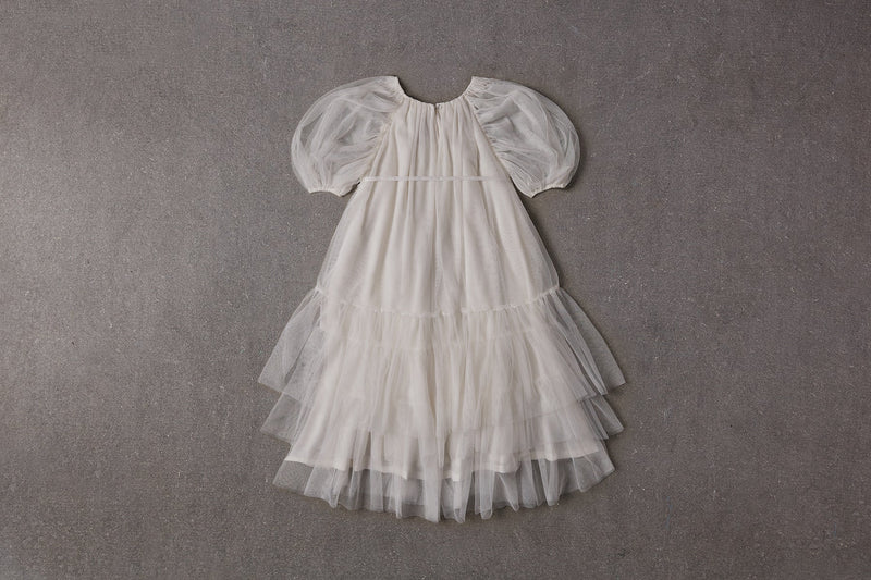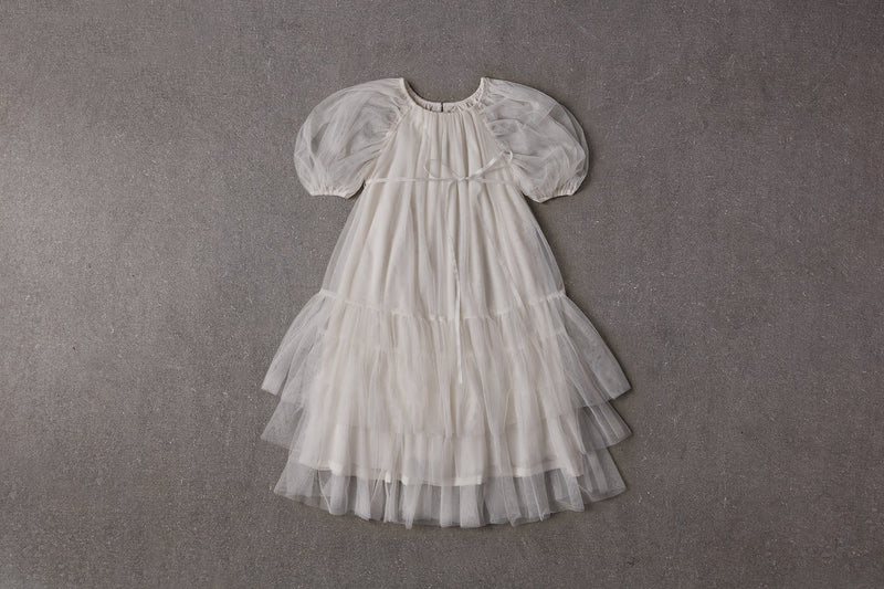 • 푹신한 공주 소매, 레이어드 튤, 허리 둘레의 고상한 탈착식 리본이 있는 Lilian 드레스는 꽃파는 소녀의 순간, 생일, 첫 영성체, 크리스마스, 부활절 또는 이드에 더욱 마법 같은 드레스를 선사합니다.