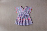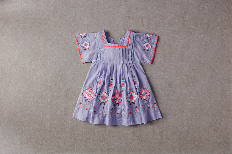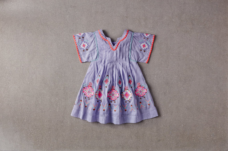 자수가 있는 무릎 길이 퍼플 코튼 생일 드레스